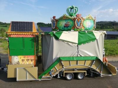 Dieses kompakte und mobile Kinderkarussell bietet mit bis zu 18 Sitzplätzen eine außergewöhnlich hohe Kapazität. Es eignet sich ideal für den Verleihbetrieb sowie für Veranstaltungen mit Abrechnung pro Fahrgast und überzeugt durch schnellen Aufbau, durchdachte Details und flexible Ausstattungsvarianten.